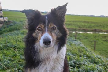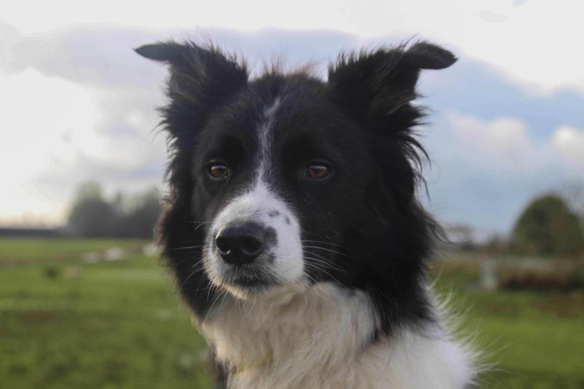 Finn is als pup bij Maria gekomen, en wilde daarmee schapen drijven.